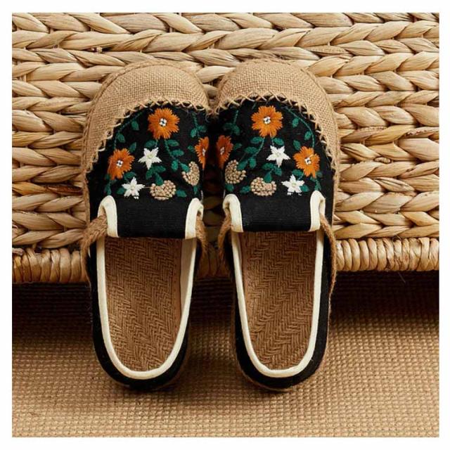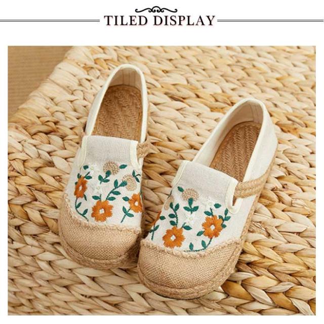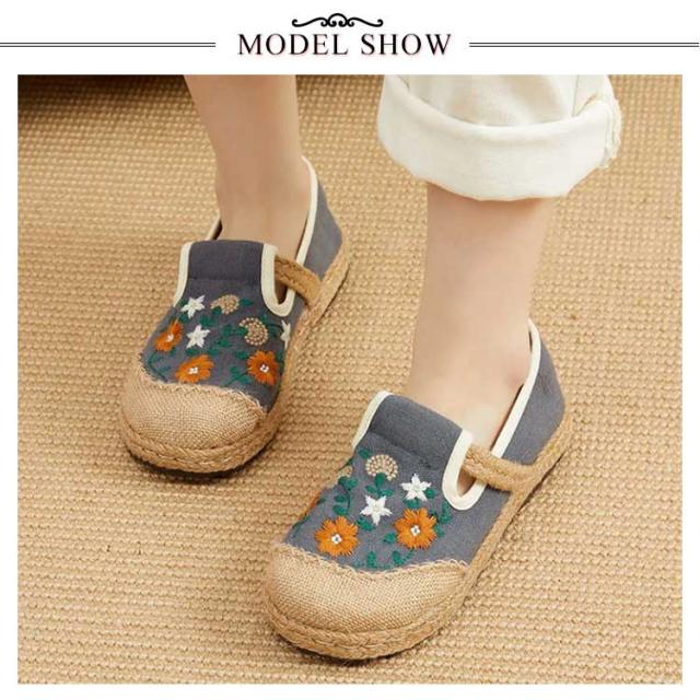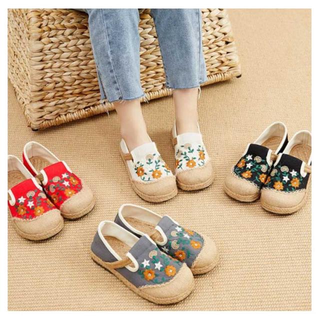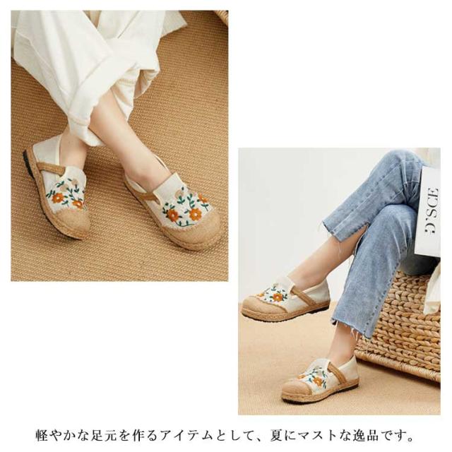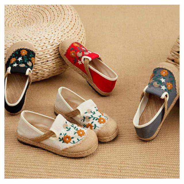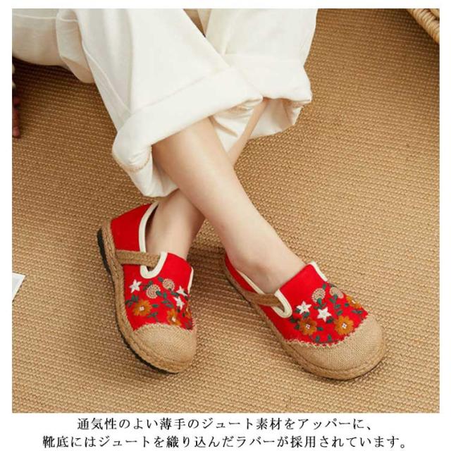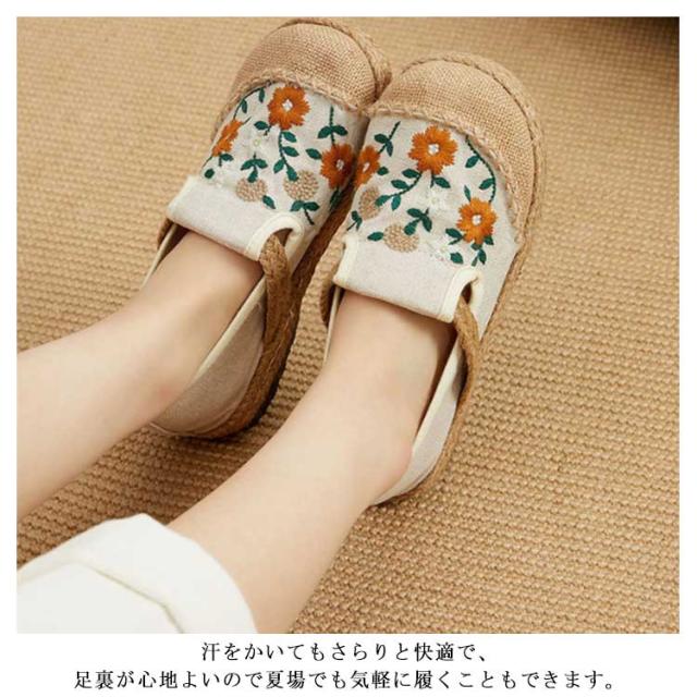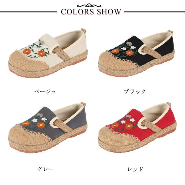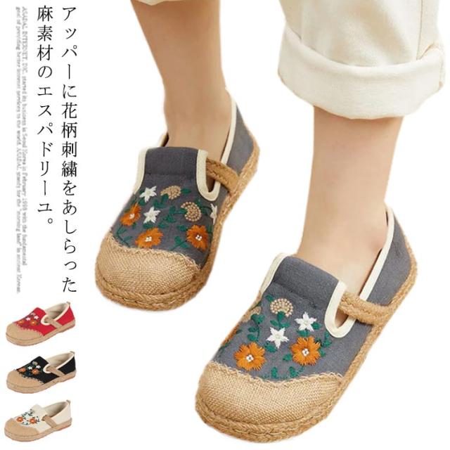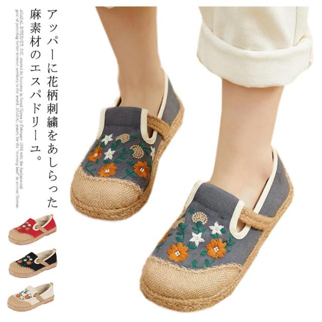 スリッポン エスパドリーユ 花柄 刺繍 レディース 麻 リネン ジュート シューズ 靴 春夏 涼しげ 涼しい くつ 軽量 通気性抜群 ナチュラル スニーカー 歩きやすい ペタンコ チャイナ風シューズ かわいい おしゃれ プレゼント 女性 誕生日