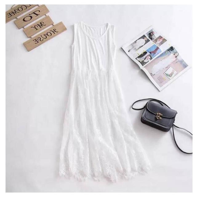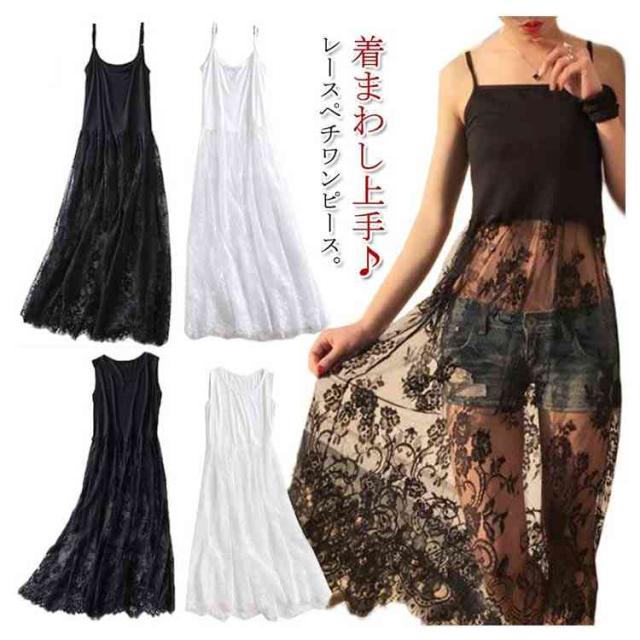 送料無料 ペチコート インナーワンピース レースワンピース レディース マキシワンピ 重ね着 チュール タンクワンピース 大きサイズ 白 黒