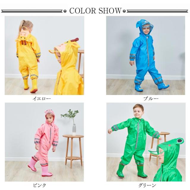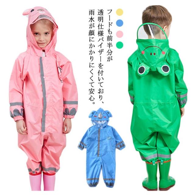 保育園 幼稚園 レインコート キッズ つなぎ オールインワン カッパ 上下 子供 自転車 動物 アニマル ベビー 完全防水 レインポンチョ 幼児 ロンパース 雨 レインウェア うさぎ カエル かわいい レインスーツ お砂場着 林間学校 90 100 110 120 130 140 送料無料