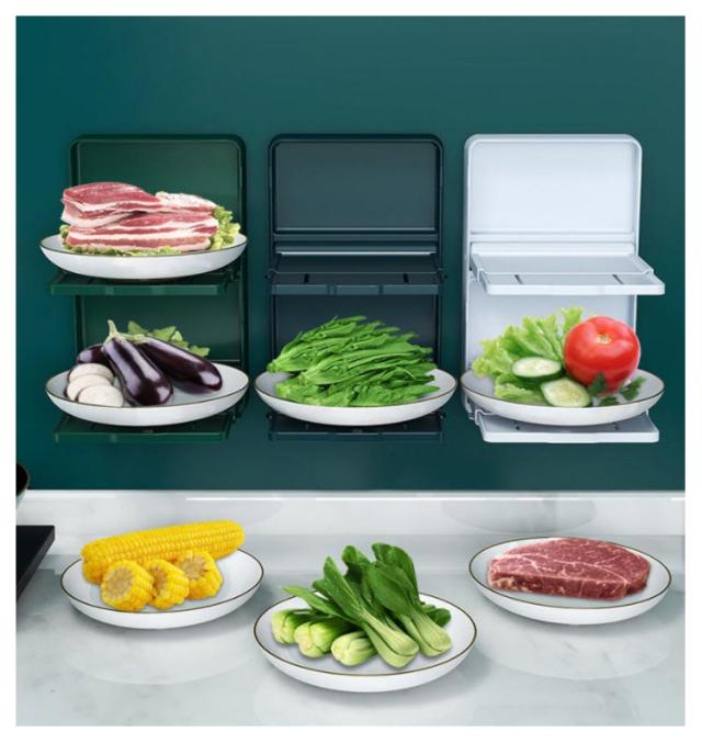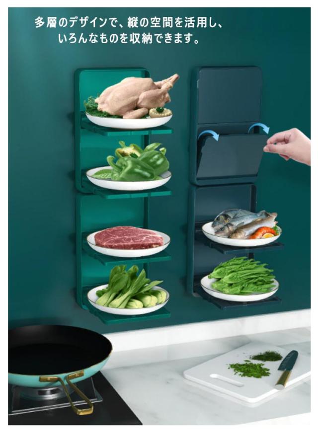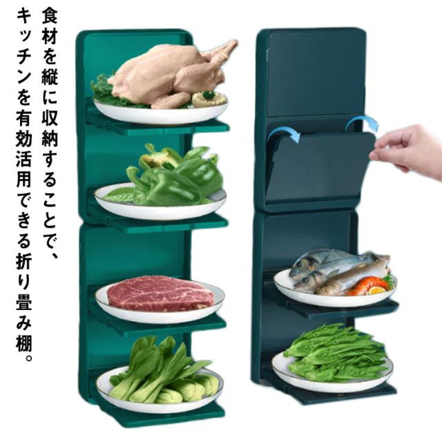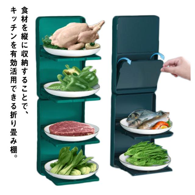食材棚 収納ラック 折り畳み棚 キッチンラック 野菜棚 皿置き 食材トレー棚 縦収納型 壁掛け 引き出し式 省スペース 料理用 耐荷重 水洗い 設置簡単 積み重ね可能