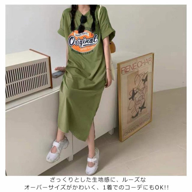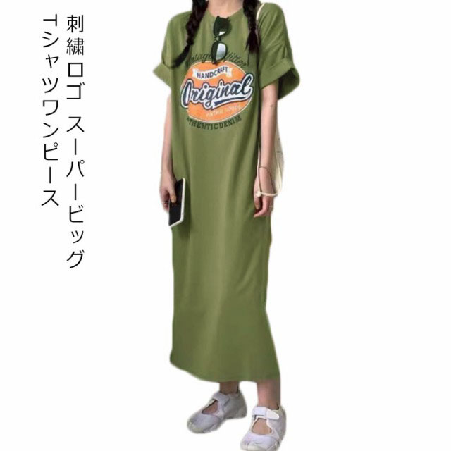 刺繍ロゴ Tシャツワンピース Tシャツ ワンピース 半袖 大きいサイズ レディースチュニック ワンピ ルームウェア 部屋着 韓国ファッション