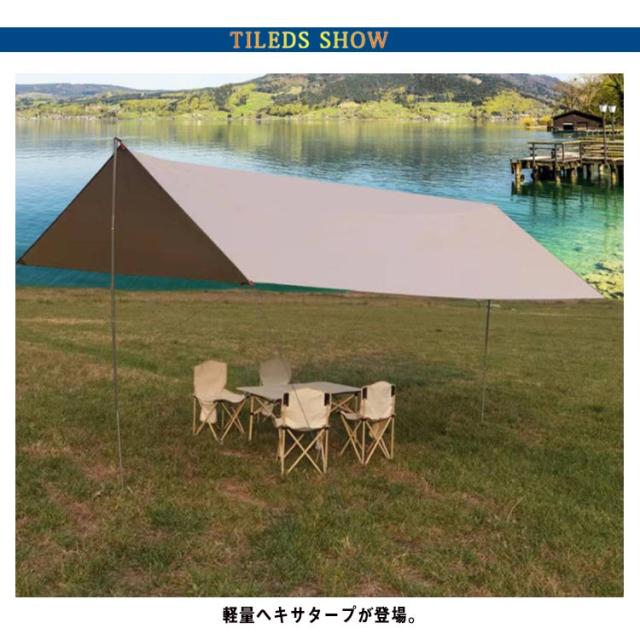 ヘキサタープテント 3*4.5m ポール2本付き タープテント ヘキサタープ タープ テント ヘキサ 簡単 軽量 uvカット uv加工 防水 キャンプ アウトドア レジャー バーベキュー 海 登山 ピクニック