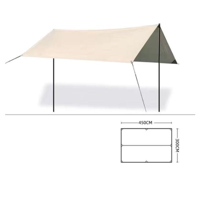| サイズについての説明 | サイズ:3*4.5M、重量:3kg,商品内容:キャリーバッグ*1,ポール*2本,ペグ*8本、ロープ*8本 |