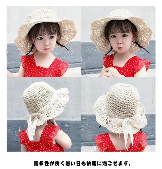 サイズ調節可能 麦わら 帽子 麦わら帽子 春 夏 秋 子供 赤ちゃん キッズ ベビー リボン 出産祝い プレゼント 日よけ 52cm キャップ 熱中症対策 軽量 折りたたみ ベビー 幼児 新生児 子供服 春夏