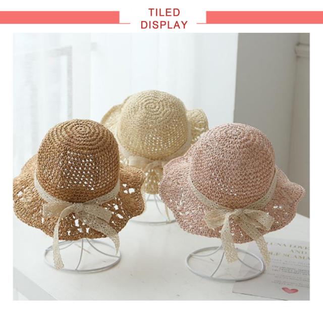 | レース付きの女の子らしいデザイン。つば広めで紫外線対策とUVカット! 通気性が良く暑い日も快適に過ごせます。 あご紐付きで帽子が風に飛ばされにくいです。 帽子のつばにはワイヤー入りなので形を調節でき、折りたたんだ時も形状キープできます。 | |
