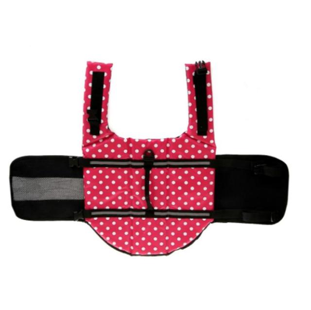 | ワンちゃんの水遊びに欠かせないライフジャケット。 人間の救命胴衣の材料と同じ、高浮力素材を使用した犬用ライフジャケットです。 愛犬の体にしっかりフィットするような立体構造が特徴。 マジックテープとバックルを付けるだけで簡単装着。 サイドラインには反射素材を採用、遠い所まで泳いでも視認しやすいデザインです。 背中にはリードをつなげられるリングや、ハンドルが付いているため、緊急の際も安心。 使用後は簡単に折りたためるので、持ちやすく保管も便利。 | |