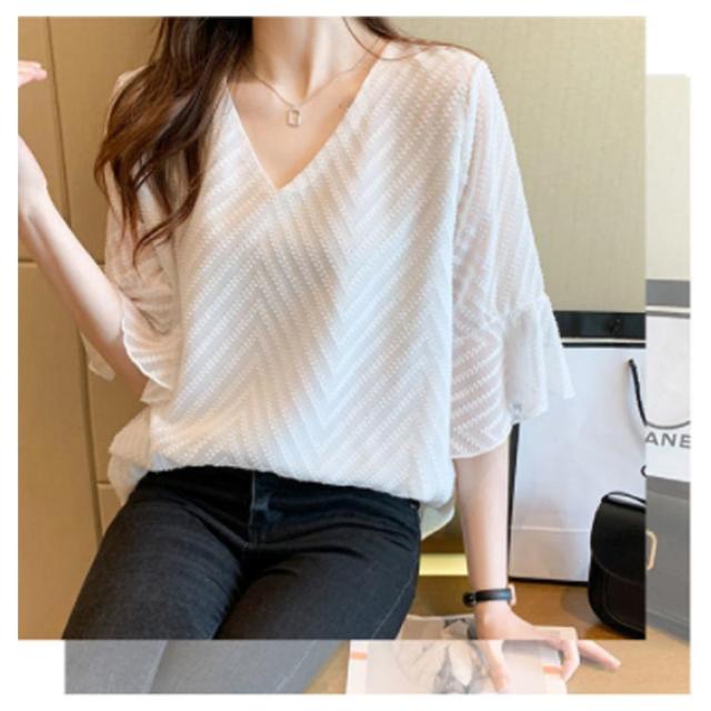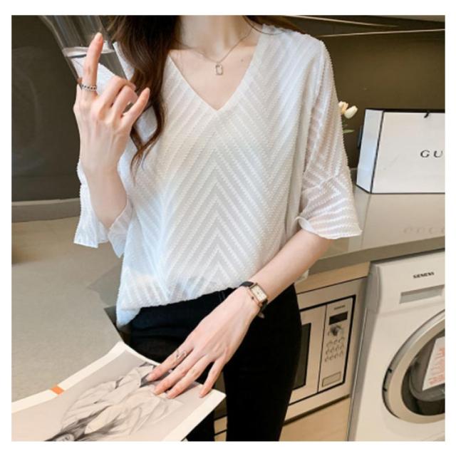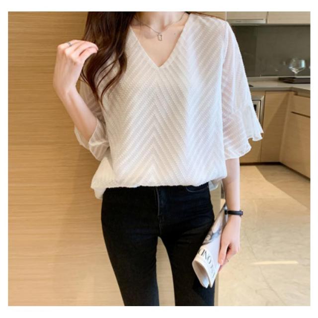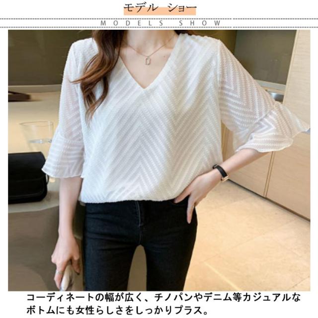 ブラウス レディース シフォン ブラウス 半袖 Vネック 涼しげ 涼しい シフォン素材 トップス フレア袖 フレアスリーブ Tシャツ 体型カバー 春夏 薄手 ゆったり カジュアル 無地 おしゃれ かわいい オフィス 通勤 通学 20代 30代 40代 送料無料