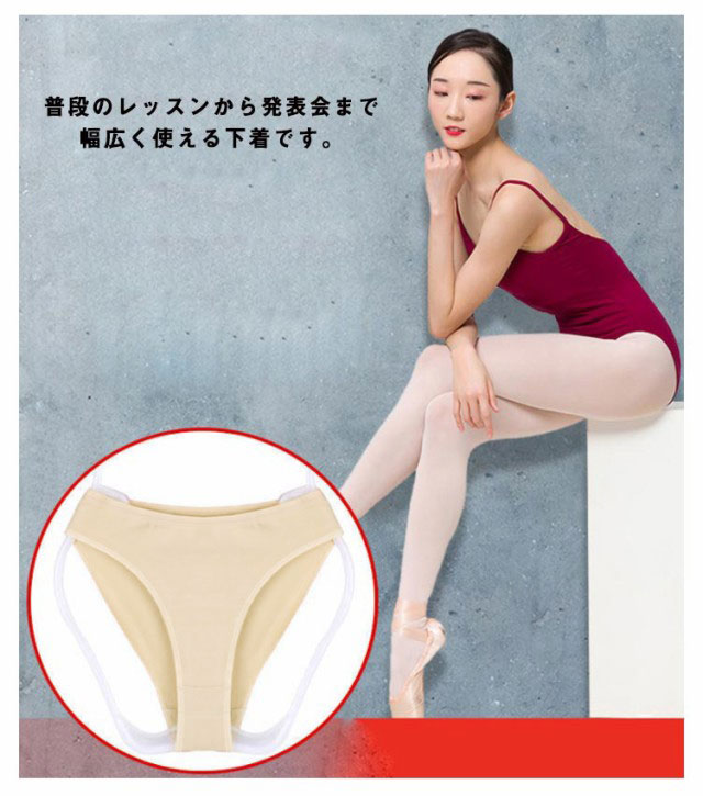 | バレエ用インナー、レオタードの下に着用する目立ちにくいベージュカラーのバレエ用ショーツです。 伸縮性も高く、素肌感覚でご使用いただけます。 デリケートなお肌に直接触れる物なので綿95%は嬉しいです♪ 普段のレッスンから発表会まで幅広く使える下着です。 小さいお子様から大人の方まで幅広くご着用頂けるように8サイズご用意致しました。 ハイカットで衣装からはみ出にくく着用感の良い商品です。 バレエ以外のダンスや競技、仮装やコスプレまで、幅広く使えます。 | |