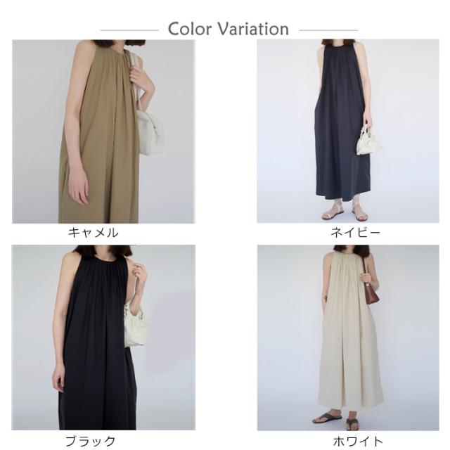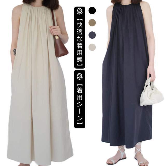 送料無料 ホルターネック ロング丈 ノースリーブ ワンピース 体型カバー ゆったり フレア 涼しい リゾートワンピース ロングワンピース マキシワンピース 夏 レディース キャメル ネイビー ブラック ホワイト