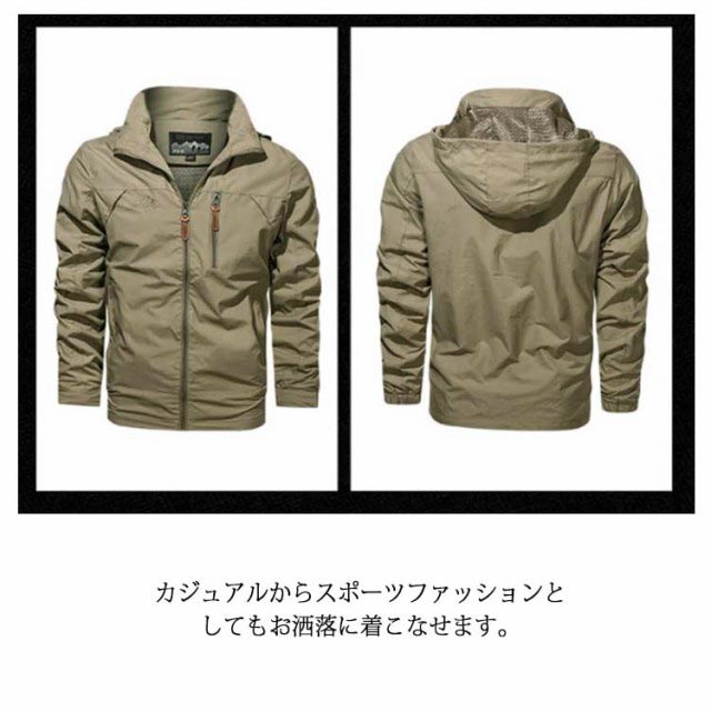| 涼しく快適な春夏秋用内側のメッシュのマウンテンパーカー。バイク乗車時の防風ウインドブレーカー。 取り外し可能なフードは脱着もファスナーでスムーズに簡単!ジップ付きポケットで中身の落下を防ぎ、見た目にもおしゃれなプルコード付きです。 カジュアルからスポーツファッションとしてもお洒落に着こなせます。 防風、速乾、防水性もあるのでアウトドアでも活躍間違いなし。 通勤、通学の普段使いはもちろん、登山(山登り)野球、サッカー、フットサルなどのスポーツ観戦、野外フェス、キャンプなどのアウトドアや旅行先になど、さまざまなシーンで大活躍。 | |