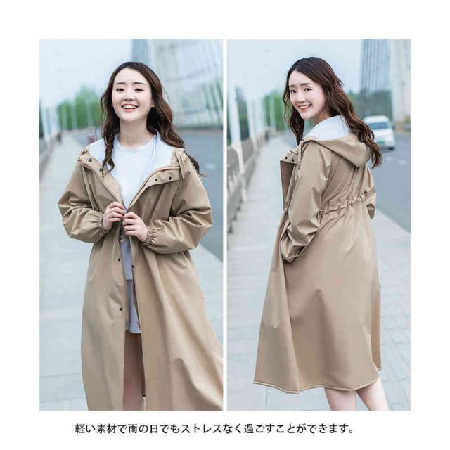 | 雨の日の自転車、普段着に。おしゃれで便利なレインコート。100D撥水生地 100D撥水生地とTPU防水生地を使用。防水はもちろん、高い撥水カで雨を弾きます。軽く柔軟性があることも特徴で、動きやすいです。 軽い素材で雨の日でもストレスなく過ごすことができます。 フロントにはジッパーとスナップボタンの2重仕様で防水性は万全です。 フードのつば部分にあるマジックテープで付属のバイザーを固定することができます。雨によるメイク崩れを防ぎます。 雨がやんでそのまま着てても違和感なし!タウンでもアウトドアでも着こなせるデザインが人気です。 | |