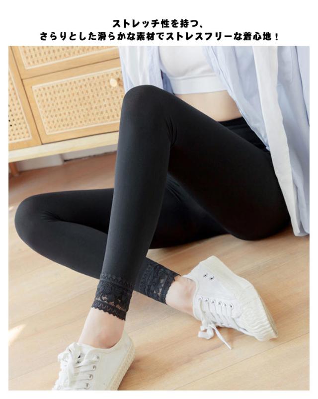 送料無料 レギンス 夏用 涼しい スパッツ レディース ストレッチ レギンス 薄手 レース 無地 インナー レイヤード 10分丈 スリム おしゃれ 伸縮性 伸びる フィットネス スッキリ 重ね着 レイヤード ベージュ グレー ブラック