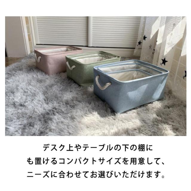 | 毎日の生活でマルチに使える万能バスケット 衣類やおもちゃ、書類、お菓子など、様々なアイテムの収納として大活躍します。 ナチュラルな風合いと柔らかな手触りのコットンリネン素材を採用します。 本体両サイドには頑丈取っ手もついていて、長くご愛用いただけます。 使わない時は折りたたんで隙間にさっと収納することができます。 デスク上やテーブルの下の棚にも置けるコンパクトサイズを用意して、ニーズに合わせてお選びいただけます。 | |