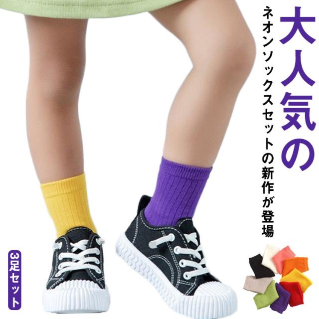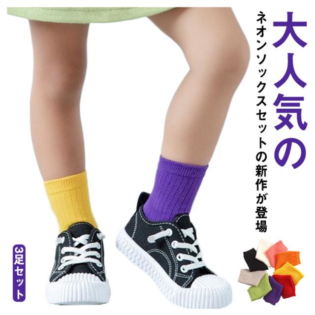 ネオンソックス3足セット 送料無料 こども服 靴下 ソックス 子供用靴下 セット リブ 無色 単色 韓国子供服 韓国こども服 子ども服 女の子 女子 男の子 男子 ボーイズ ガールズ キッズ ジュニア