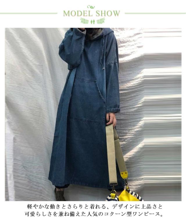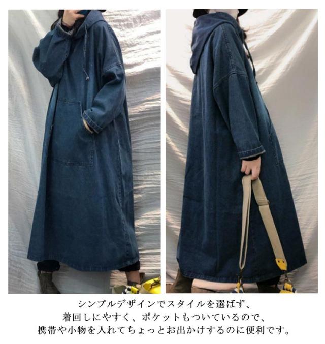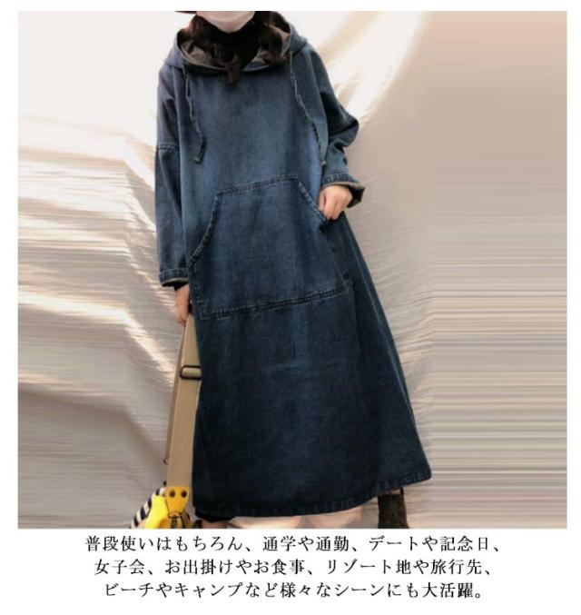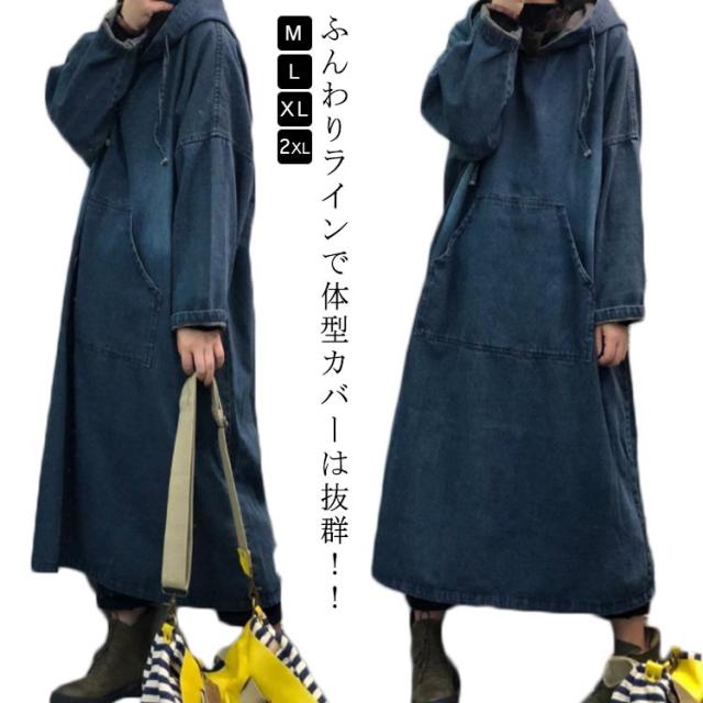 レディース マキシワンピー デニム パーカーワンピース カジュアル ロングワンピース 長袖 春秋 可愛い マキシ デニムワンピース マタニティ 体型カバー コーデ 着痩せ ゆったり 30代 40代 プルオーバーマキシ丈 送料無料