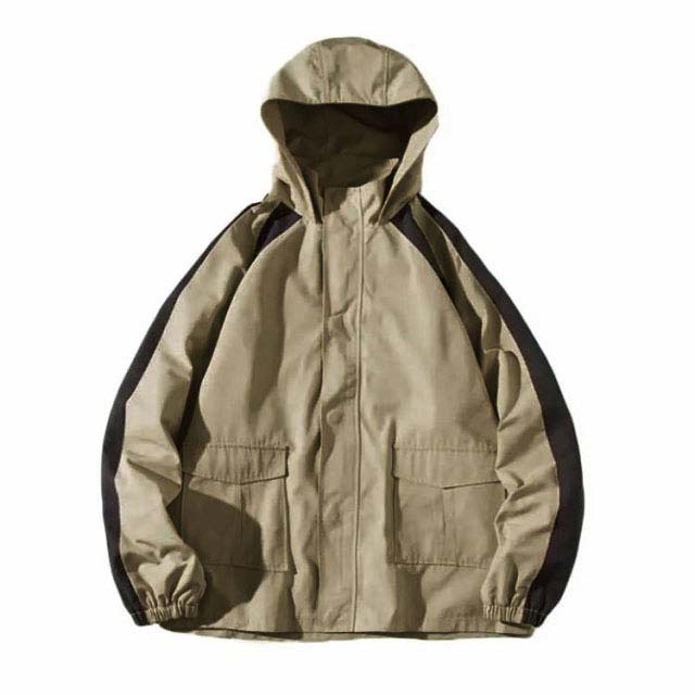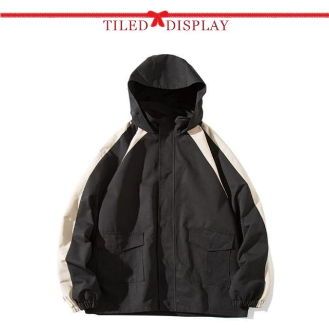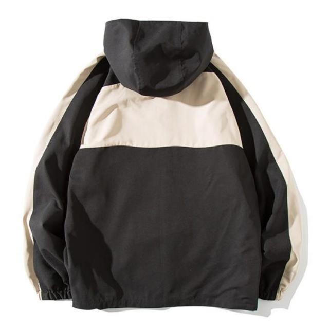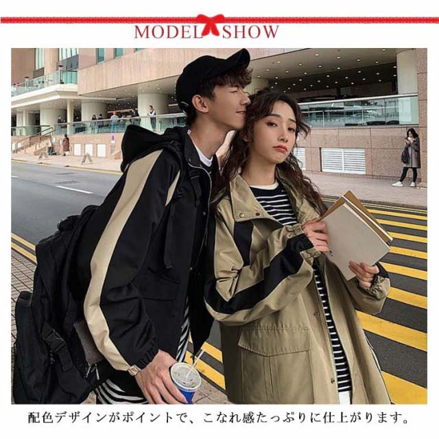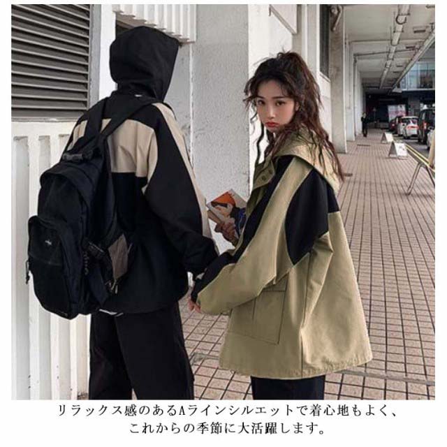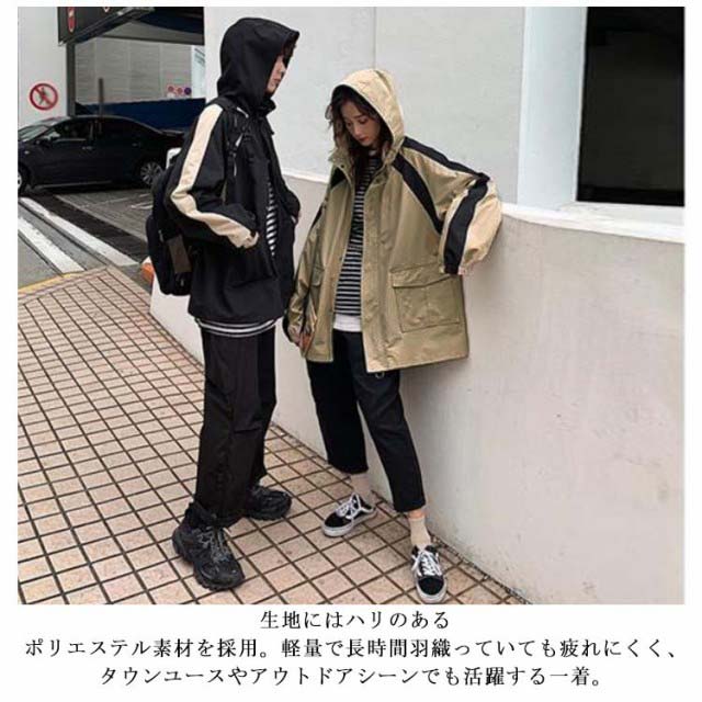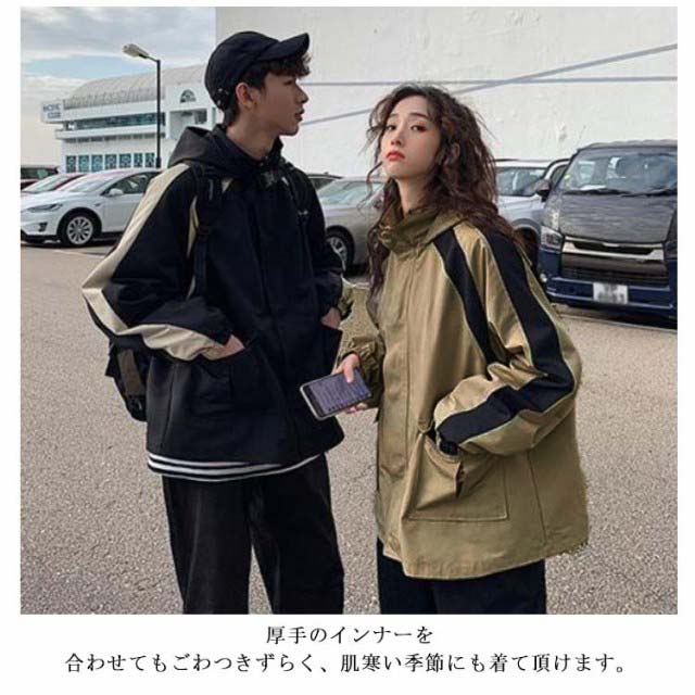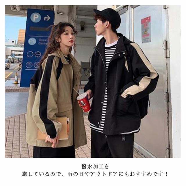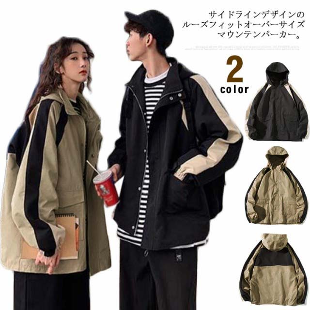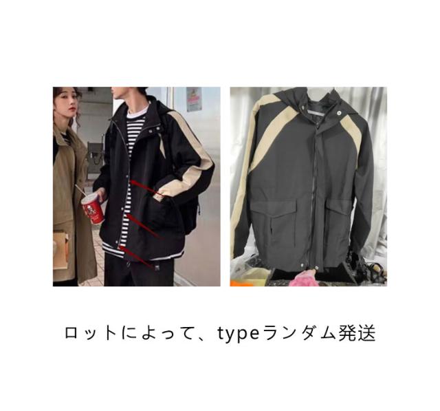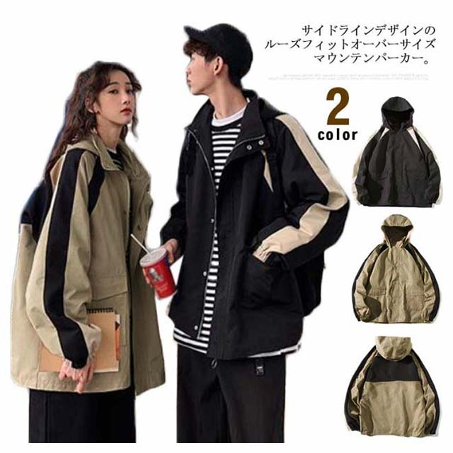 マウンテンパーカー メンズ レディース ブルゾン アウター ライン 配色 フード付き 裏地付き 防風 撥水 薄手 スタンド ライトアウター ゆったり アウトドア キャンプ 登山 ビッグシルエット 大きいサイズ 【送無】