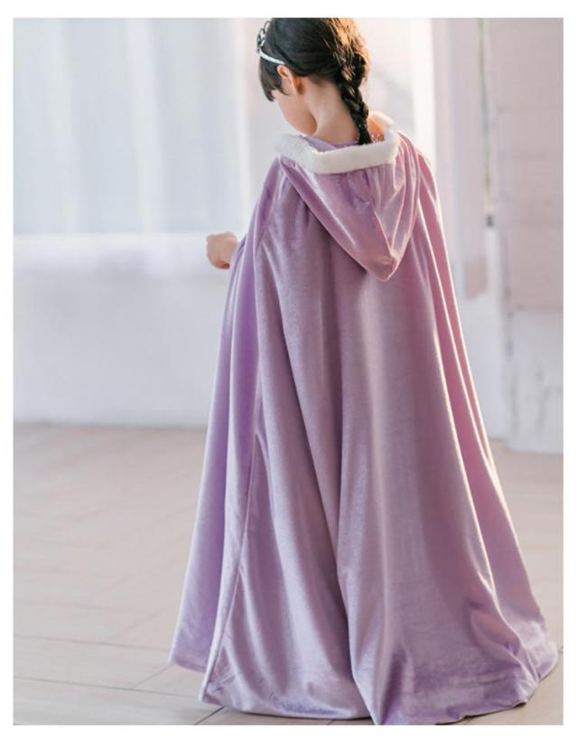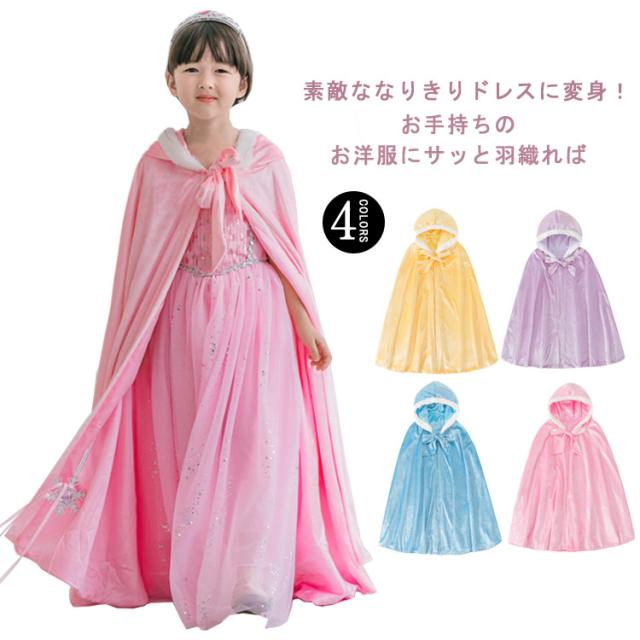 子どもドレス マント コスプレ衣装 お姫様 コスプレ 子供 女の子 プリンセス ケープ フード付き 起毛 裏起毛 子供 ドレス 子どもドレス ブルー パープル イエロー 110 120 130