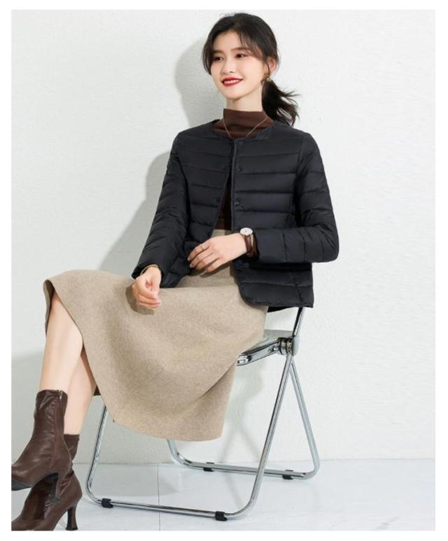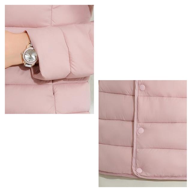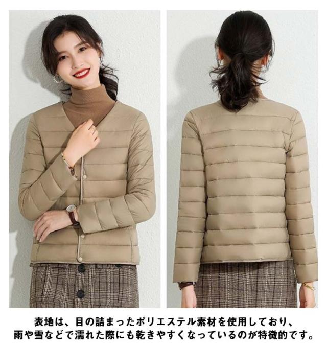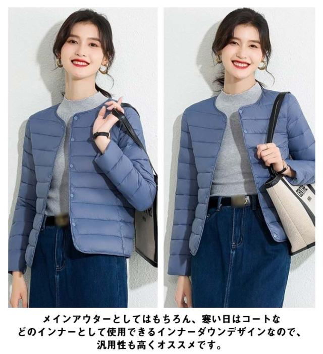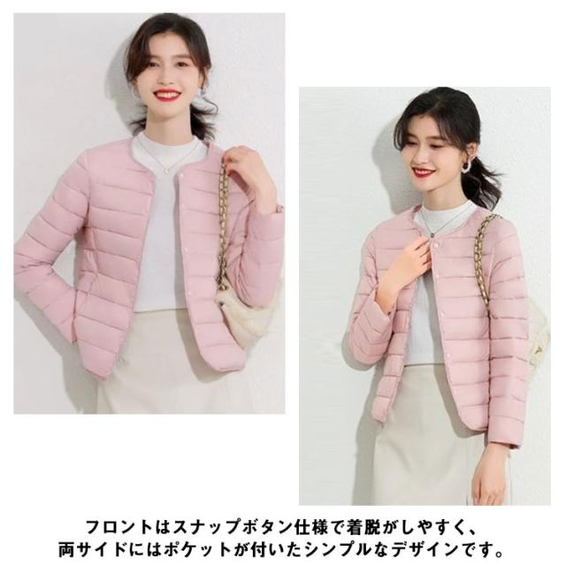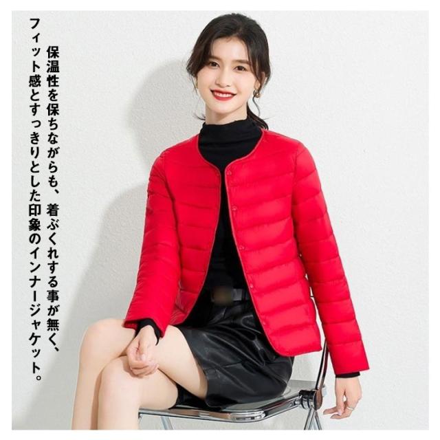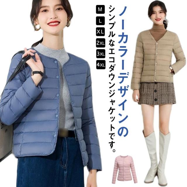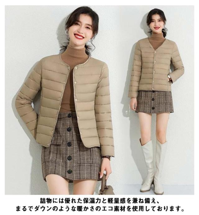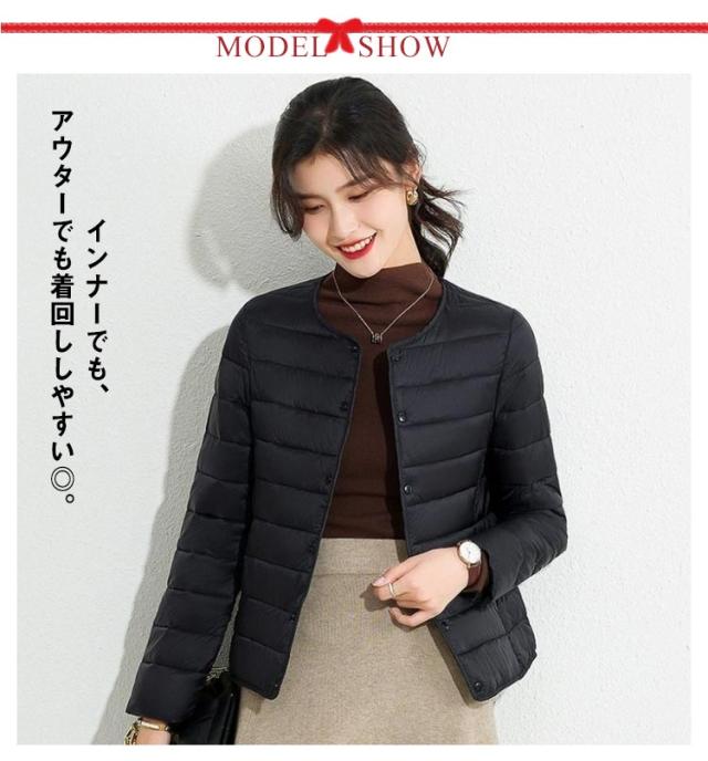 M-4XL! エコダウンジャケット インナー ダウンジャケット レディース ライトダウン ジャケット ノーカラー ショート 秋 冬 長袖 薄手 軽量 防寒 保温 コンパクト スリム フィット 通勤 通学 年末 sale セール 黒 ブラック【送料無料】