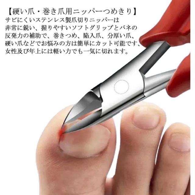 ニッパー爪切り ネイルニッパー ステンレス製 ニッパー型つめきり 巻き爪 足用 変形爪 陥入爪 分厚い爪爪水虫 硬い爪 深爪 爪周炎 爪白癬 ネイルケア 送料無料
