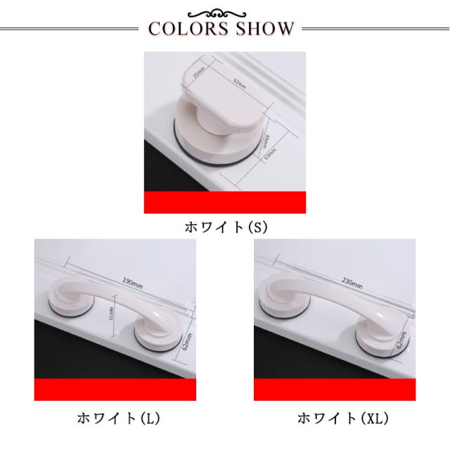 | 壁に押し付けながらレバーを引くだけで真空状態になった吸盤が強力に張り付く補助ハンドル 強力吸盤式でしっかり固定して簡単に壁から引き離せる。 上部レバーを開いてスポッと取り外し可能です。 立ち座りが多いお風呂場でも安全につかまる事ができます。 シンプルでモダンなデザインでどんな場所でも違和感なくマッチします | |