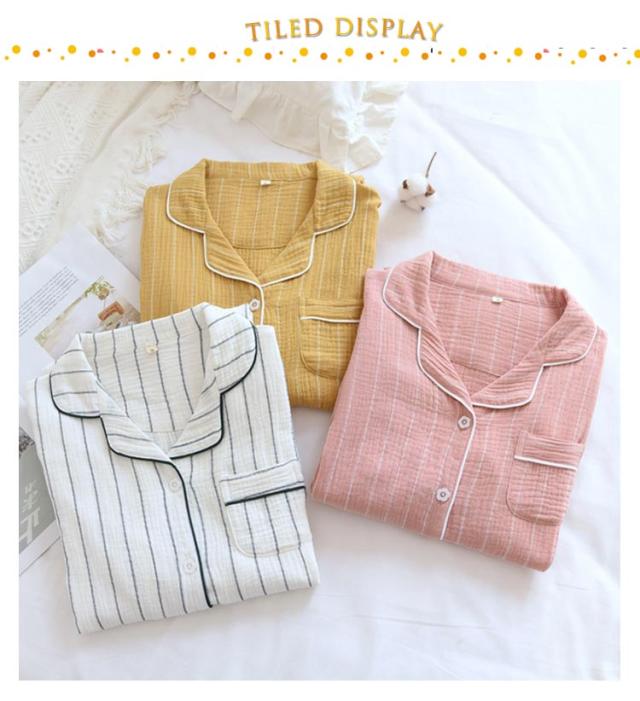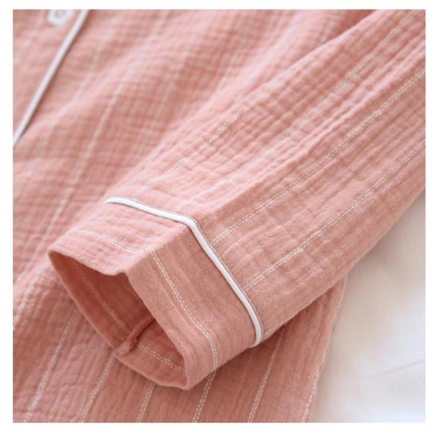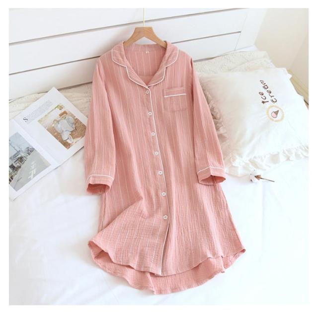 2重ガーゼ パジャマ ワンピース 長袖 コットン ルームワンピース 前開き ロングシャツ 部屋着 マタニティ ネグリジェ 送料無料 Wガーゼ ストライプ柄 春・夏・秋・冬 授乳服 妊婦服 ルームウェア ナイトウェア 寝巻き 入院