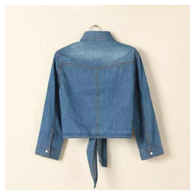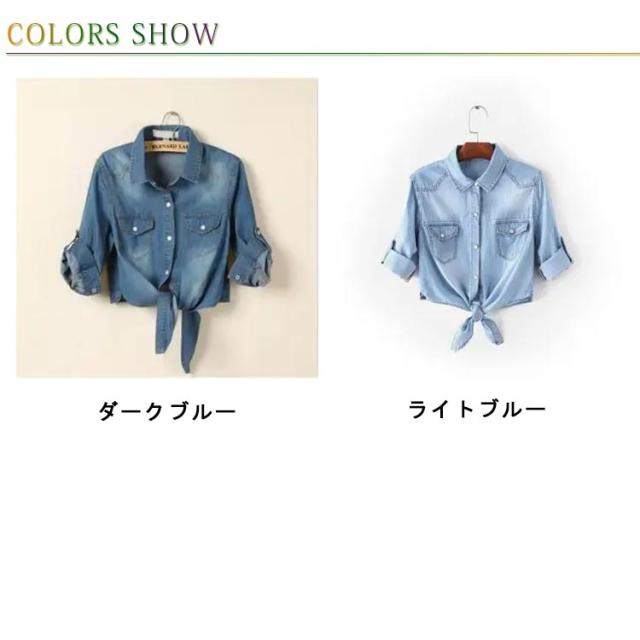 デニムシャツ レディース ショート丈 前結びシャツ 長袖 送料無料 前縛り ブラウス トップス ロールアップ 羽織り カジュアル 大きいサイズ 大人 かわいい