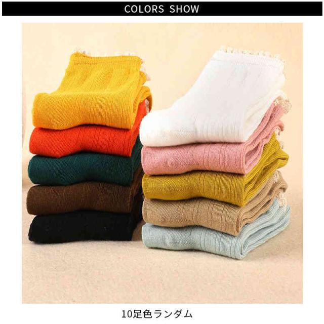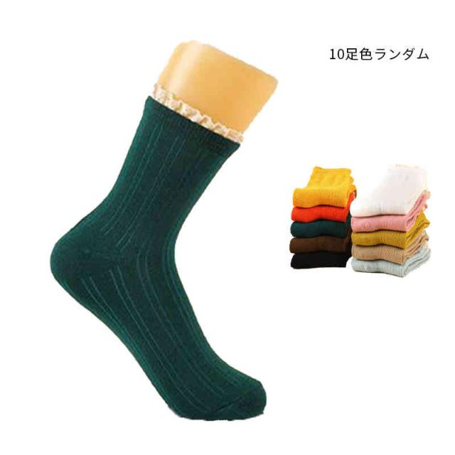 靴下 春秋 ソックス クルー丈 10足セット クルーソックス レースソックス 無地 女性用ソックス 春 秋 冬 蒸れない 保温 女性靴下 暖かい 室内 スーポツ シンプル カジュアル フリルソックス 可愛い おしゃれ スニーカーソックス 送料無料