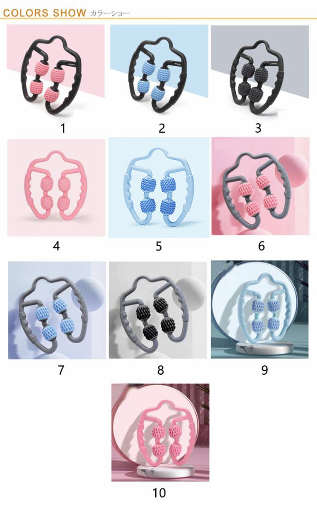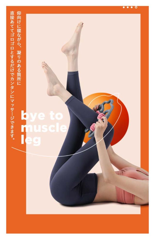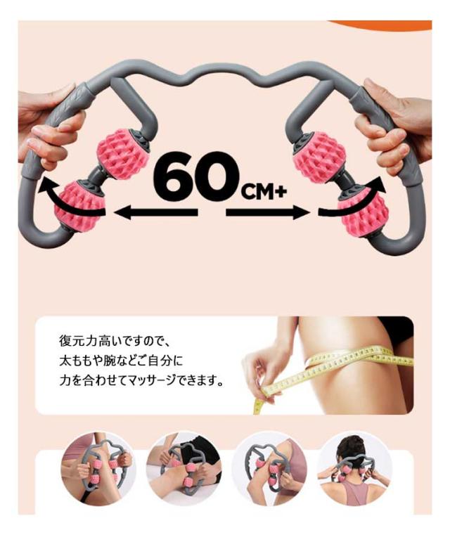| マッサージローラーポロは挟む式なので、肌にピッタリくっついて、体を包んで360度均一にマッサージできます。 運動前のうオームアップや運動後のリラックス効果が抜群、全身の筋肉を揉み解せます。 仰向けに寝ながら、凝りのある箇所に直接あててゴロゴロとするだけでカンタンにマッサージできます。 復元力高いですので、太ももや腕などご自分に力を合わせてマッサージできます。 持ち手を広げて目的の箇所にフィットさせて、ゆっくり「ぎゅ〜っ」と押さえたりコロコロ転がすと気持ちよくて思わずうっとり〜。 マッサージローラーポロは高品質TPE材質を利用して、滑らかでバリのない表面は体にやさしく、ご安心に利用いただけます。 | |