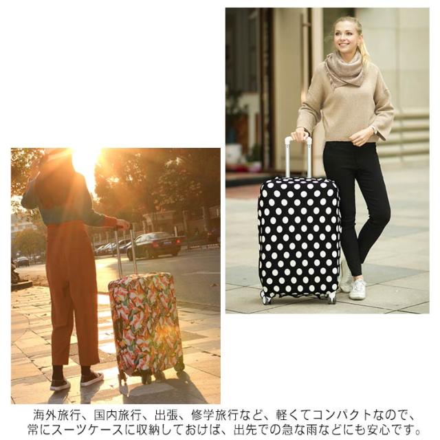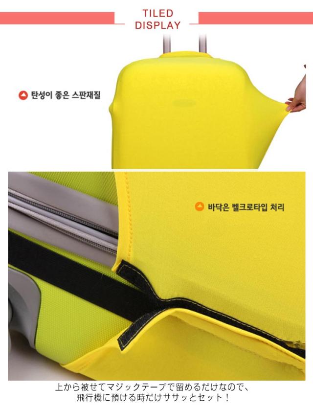 | 大切なケースを傷や汚れ、ほこりなどから守るキャリーバック用カバーです。 伸縮性抜群な柔らかで高級感のあるジャガード生地を使用、ぐーんと伸びてピタッとフィットします。 上から被せてマジックテープで留めるだけなので、飛行機に預ける時だけササッとセット! 汚れても洗えるからいつでも清潔♪ 汚れ防止、傷付き防止、ホコリ除けはもちろん、防犯性もあります。カバーを着用する事で、狙いを低減させ、より安定に荷物を運べます。 取っ手部分には穴が開いており、使いやすいです。 海外旅行、国内旅行、出張、修学旅行など、軽くてコンパクトなので、常にスーツケースに収納しておけば、出先での急な雨などにも安心です。 | |