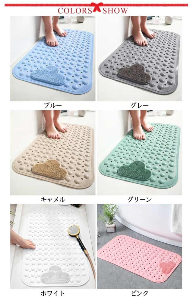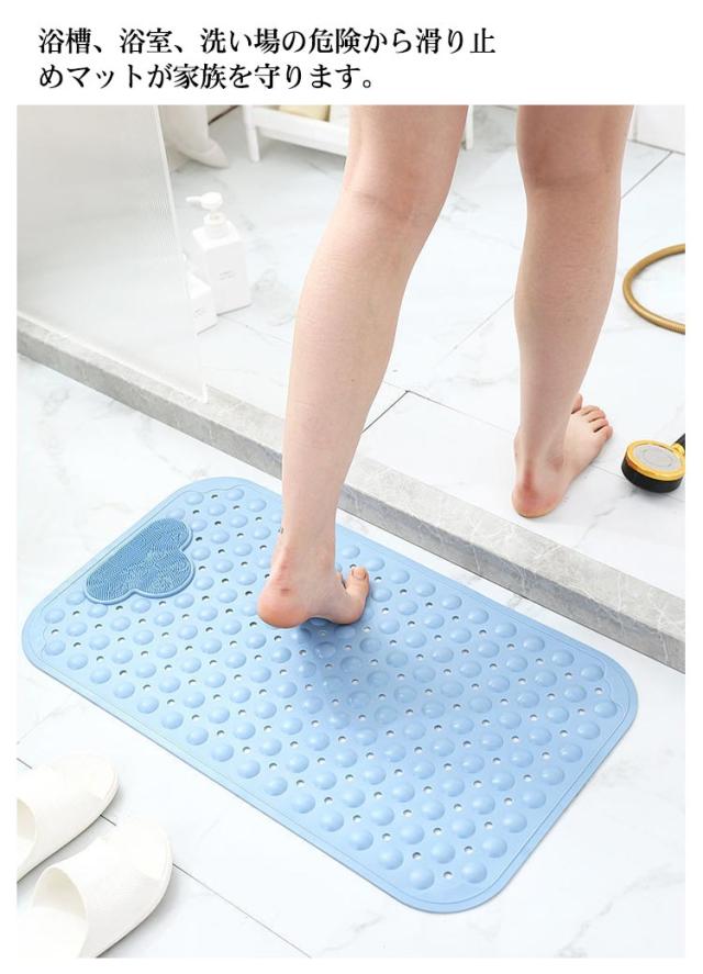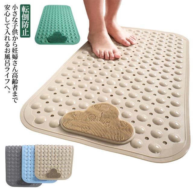 浴槽 お風呂 滑り止めマット 足洗いブラシ付き フットブラシ バスマット 吸着マット 介護用品 子ども 妊娠中 妊婦 洗い場 転倒防止 吸盤付き 40*70cm バス用品 足裏マッサージ すべり止め 転倒防止 雑貨