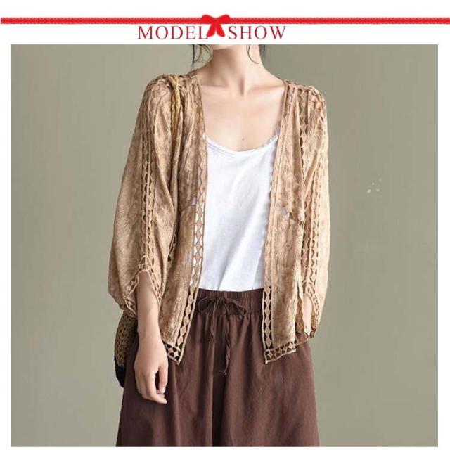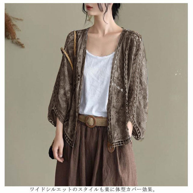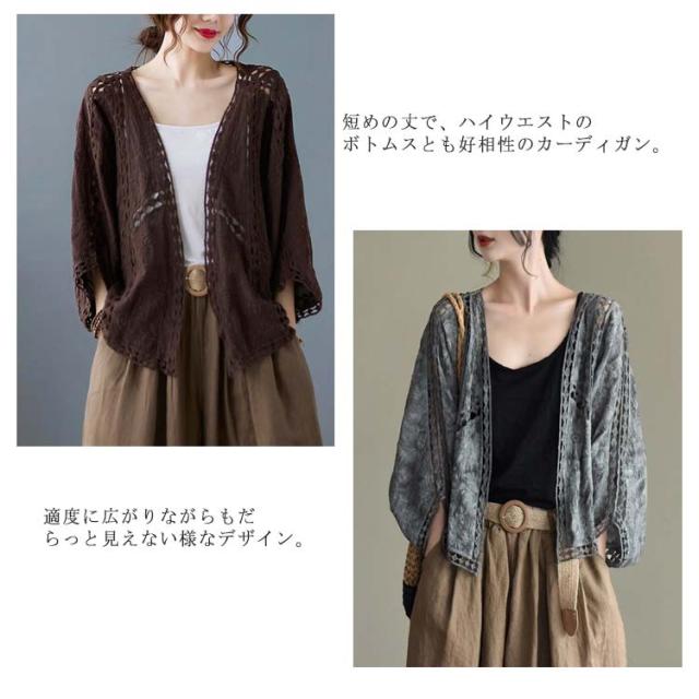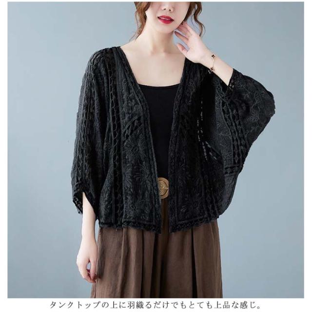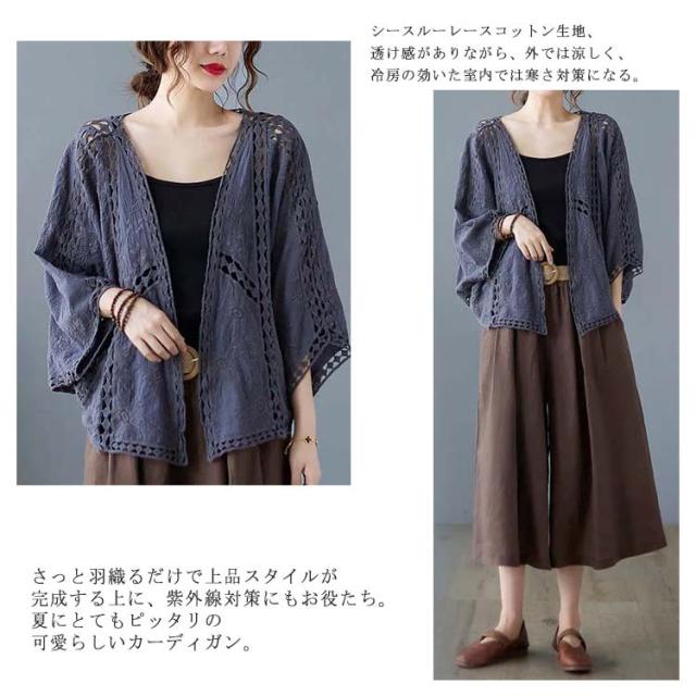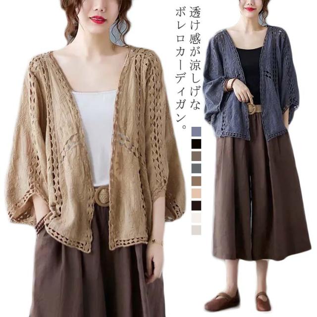 カーディガン レディース 送料無料 春 夏 羽織 羽織り 羽織もの 透ける 透け彫り 綿 コットン ドロップショルダー ドルマン 体型カバー ボレロ サマーカーディガン トップス ボリューム袖 レース ゆったり カジュアル風 おしゃれ 冷房対策