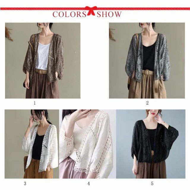| 透け感が涼しげなボレロカーディガン。 シースルーレースコットン生地、透け感がありながら、外では涼しく、冷房の効いた室内では寒さ対策になる。 さっと羽織るだけで上品スタイルが完成する上に、紫外線対策にもお役たち。 夏にとてもピッタリの可愛らしいカーディガン。 ワイドシルエットのスタイルも楽に体型カバー効果。 適度に広がりながらもだらっと見えない様なデザイン。 短めの丈で、ハイウエストのボトムスとも好相性のカーディガン。 タンクトップの上に羽織るだけでもとても上品な感じ。 | |
