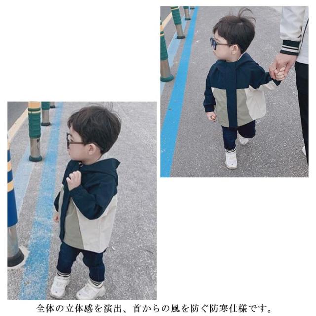 キッズ コート マウンテンパーカー 男の子 春秋 コート アウター ジュニア ジャケット 送料無料 マウンテンパーカー おしゃれ 子供コート こども服 ジャンパー ウインドブレーカー ジップアップ 防風 トップス フード付き バイカラー キッズ こどもアウトドア