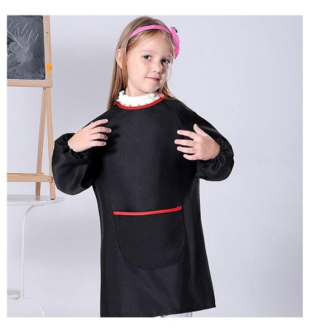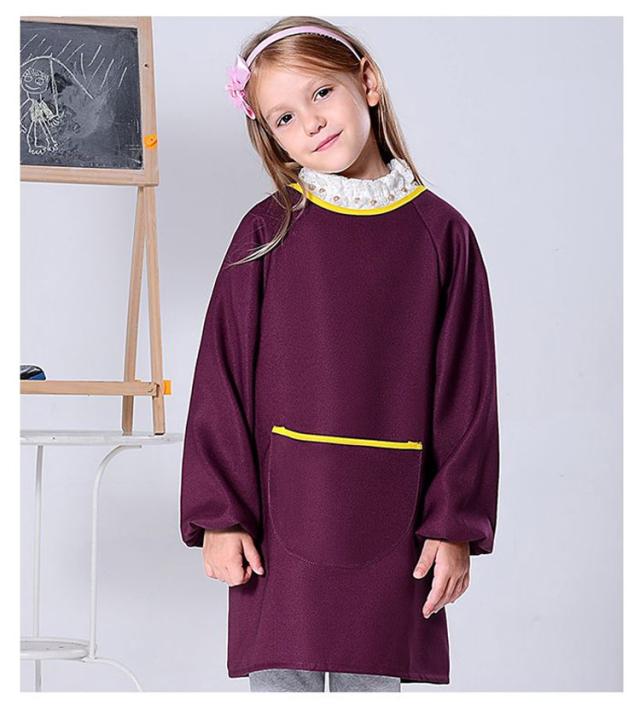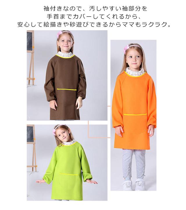 スモック 子供 キッズスモック 長袖 ジュニア プルオーバー お食事エプロン ロング丈 スモック 女の子 男の子 無地 ポケット付き 調理実習 小学生 幼稚園 習字 書道 入園 入学 通園 通学 3-12歳