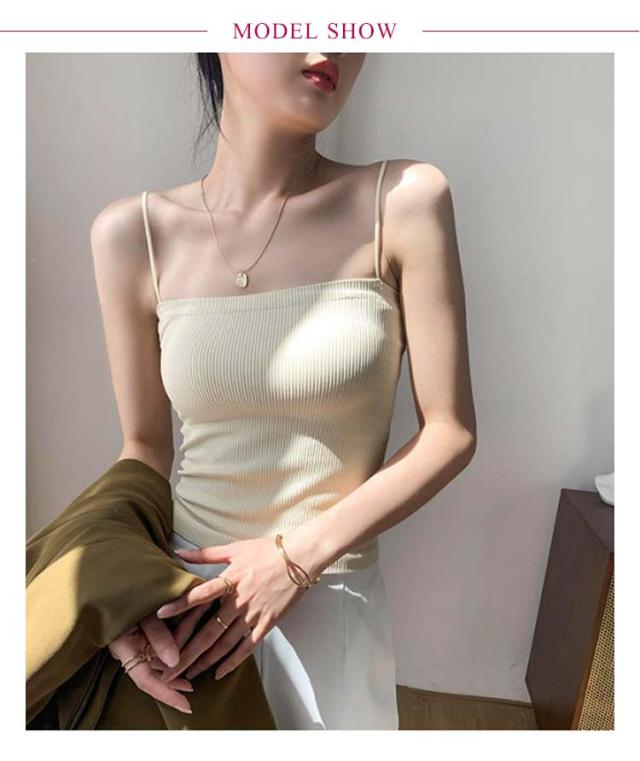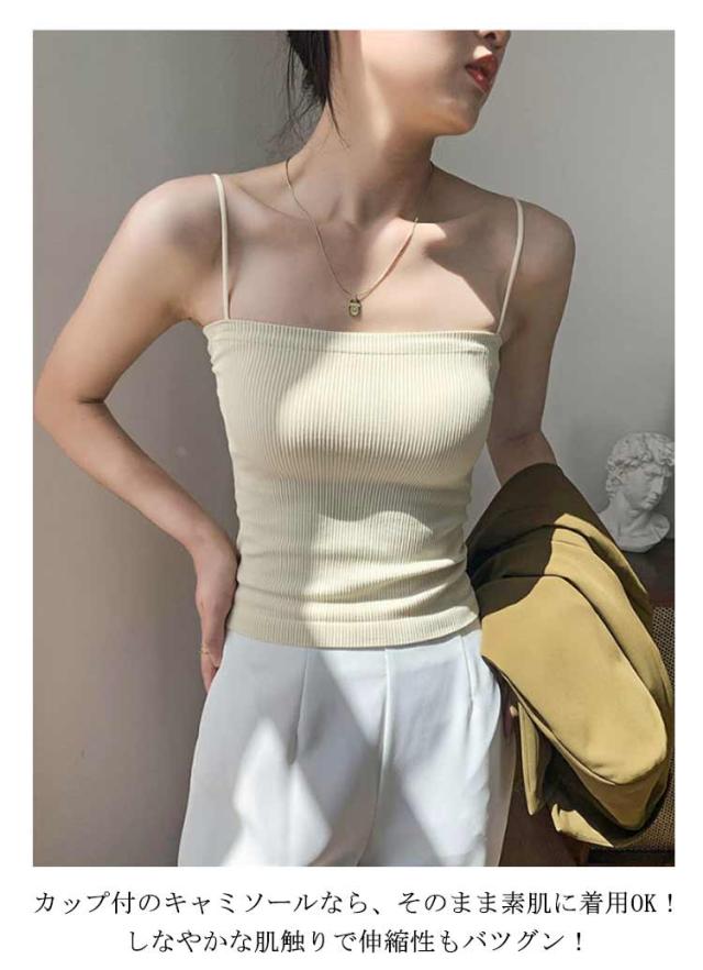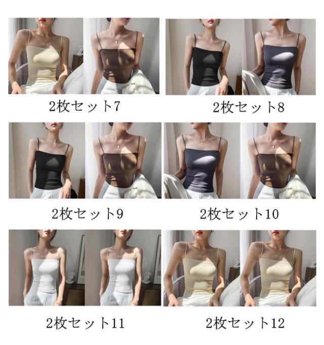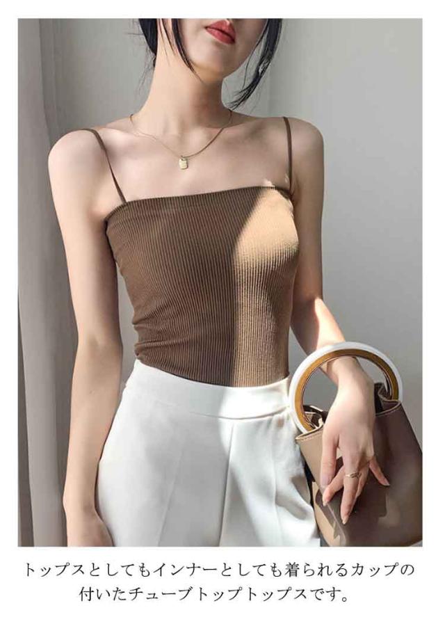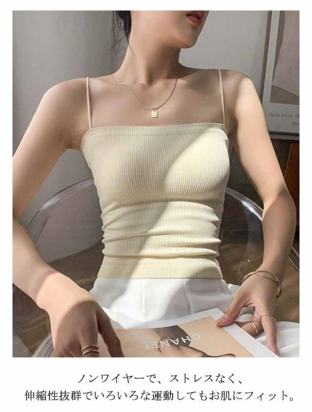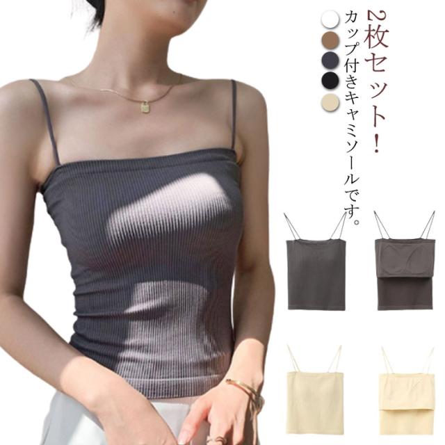 2枚セット キャミソール カップ付き レディース チューブトップ ベアトップ パッド付きキャミソール タンクトップ 下着 肌着 インナー リブ トップス 薄手 ノースリーブ シンプル おしゃれ 無地 女の子 ヨガ ルームウェア 送料無料