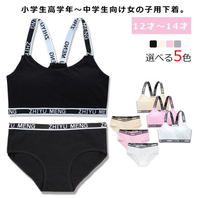 2セット入り キッズ下着 スポーツブラ 送料無料 ショーツ 上下セット ジュニアブラ 子供下着セット パッド付き 2点セット 女の子 パンツ 肌着 12才〜14才 英字ロゴ 無地 キッズ インナー アンダーウェア スポブラ ショーツ 中学生 小学生