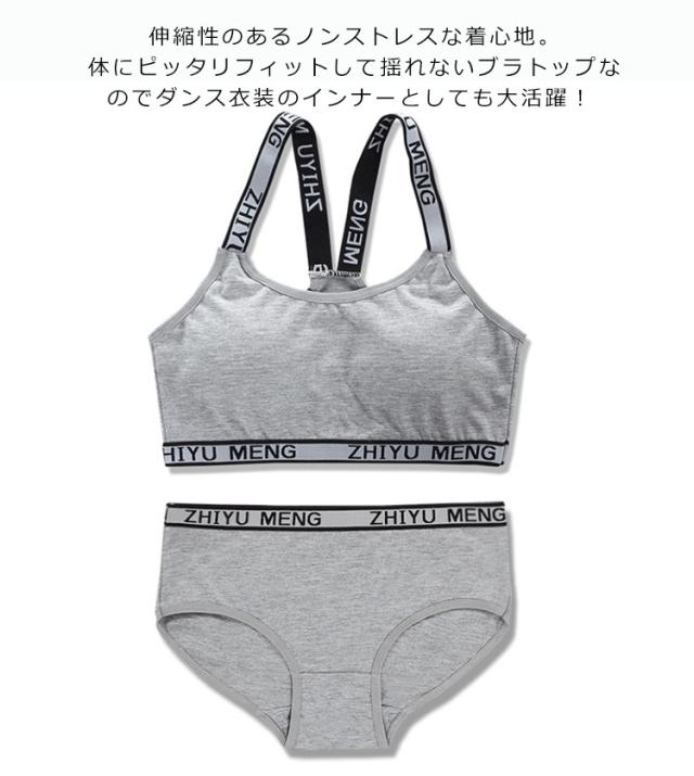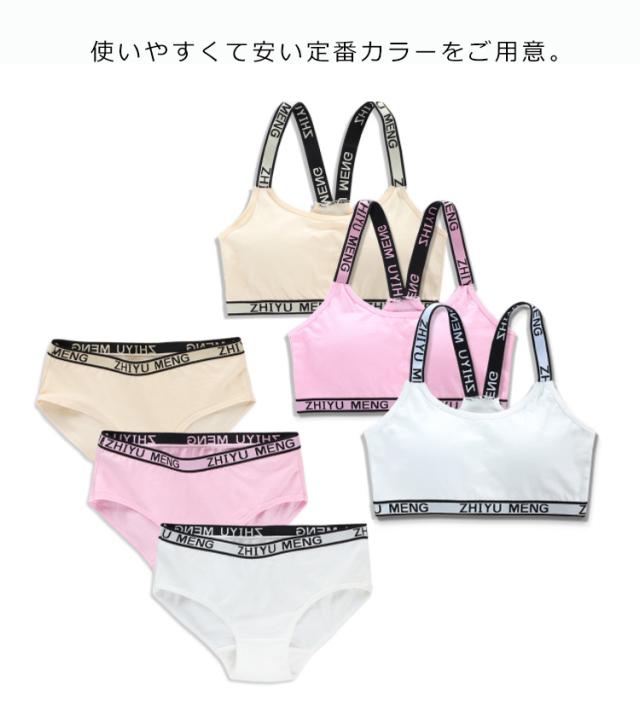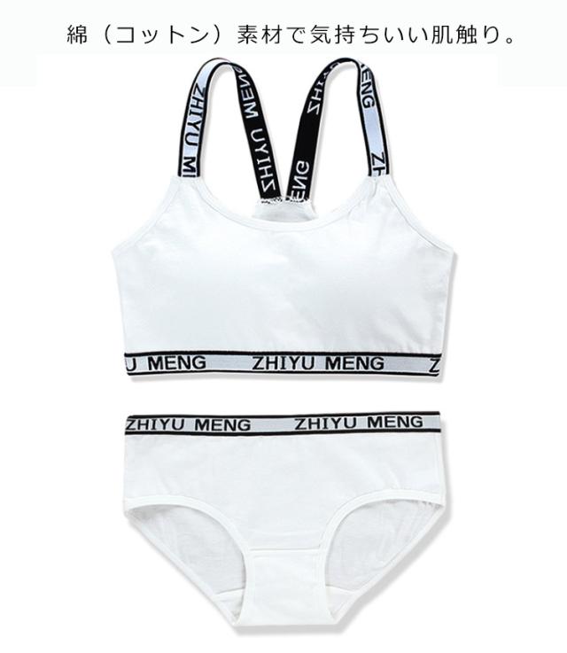 | 小学生高学年〜中学生向け女の子用下着。 スポーツブラとパンツの上下2点セットです。 綿(コットン)素材で気持ちいい肌触り。 修学旅行・水泳・スイミング・部活・体育やお泊り会におすすめのジュニア向けアウターセット。 シンプルでおしゃれな人気の英字ロゴテープデザインがポイント。 使いやすくて安い定番カラーをご用意。 伸縮性のあるノンストレスな着心地。体にピッタリフィットして揺れないブラトップなのでダンス衣装のインナーとしても大活躍! 見えてもかっこいい英字肩紐のスポブラなので、ブラジャーはまだ早いキッズのチューブトップやブラトップとしても安心して着用いただけます。 (パット入りなので安心。パッドは取り外す事が出来ます) | |