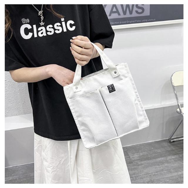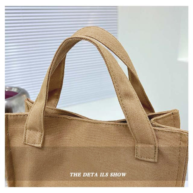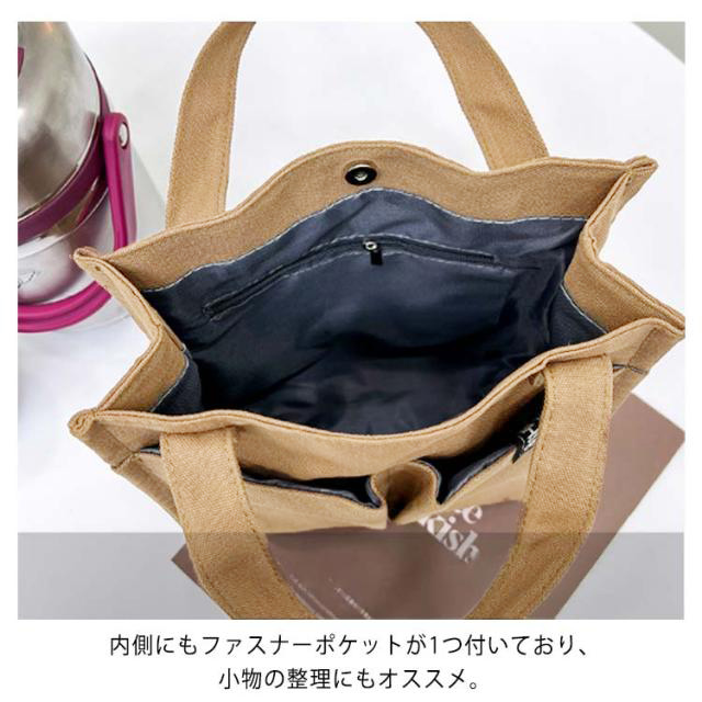 | 小さくて便利な、キャンバス素材のミニトートバッグ。 フロントには折りたたみ傘やペットボトルなどを収納するのに便利なオープンポケット付属。 内側にもファスナーポケットが1つ付いており、小物の整理にもオススメ。 さらにメインの収納スペースは仕切りなどが無く、広くご使用いただけるのも使いやすいポイントです。 開口部はマグネット式で、中身が見えないです。 型崩れしにくい厚めのキャンバス生地に加え、持ち手部分はさらに安定感のある厚めの生地を重ねて持ちやすく仕上げました。 必要な物をサッと取り出しでき、お散歩にもぴったり。 ちょっとしたお出かけ、お散歩、通勤・通学の際のサブバッグやランチトートにも、サッと持てる手軽さが魅力です。 | |