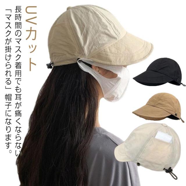 送料無料 マスク掛け付き レディース帽子 完全遮光 キャップ マしゃれ スク 春 おUVカット 女性 夏 深め 大きいサイズ 折りたたみ 飛ばない サファリハット ハット レジャー アウトドア 日焼け防止 つば広 日よけ 小顔効果 マスクフック付き