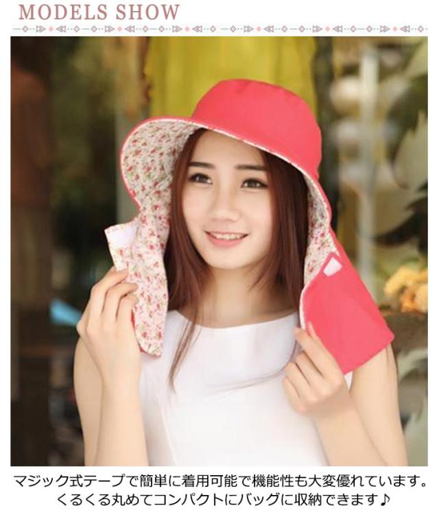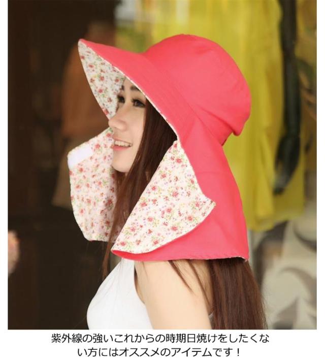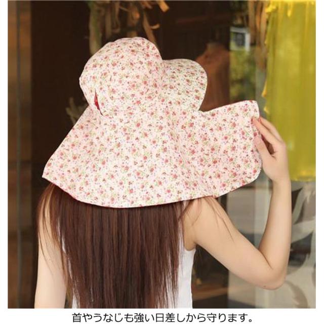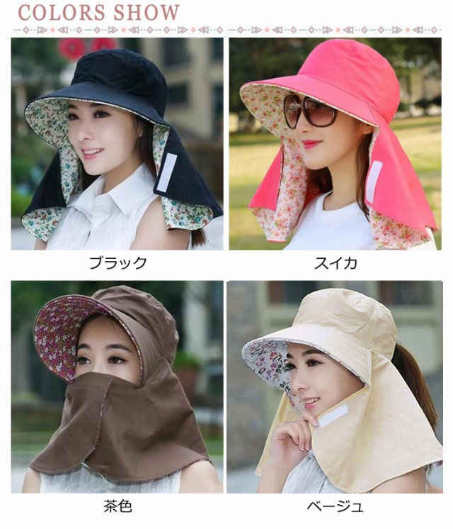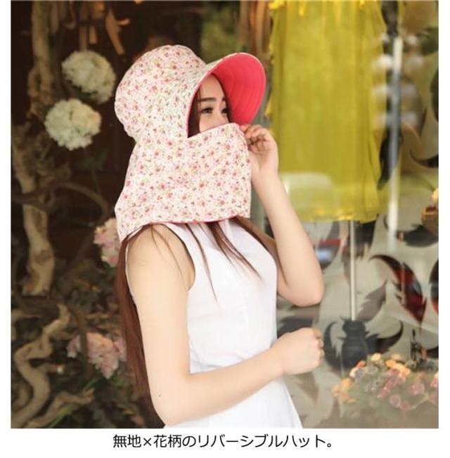 送料無料 日よけ帽子 レディース UVカット帽子 小花柄 遮光 フェイスカバー付 首までガード 日焼け対策 ガーデニング ハット つば広 農園帽子 帽子 紫外線対策 小顔効果 農作業 日よけ サンバイザー ウォーキング スポーツ 熱中症予防