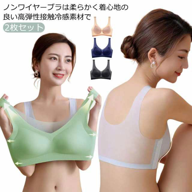 2枚セット!ブラジャー 接触冷感 ノンワイヤー シームレス 夏用 蒸れない 胸を小さく見せるブラ ホックなし ブラ ブラトップ 冷感 夏 涼しい 快適 メッシュ カップ付き ナイトブラ 痛くない 軽い 薄い 楽ちん レディース 下着 脇肉 脇高 ストレッチ 送料無料