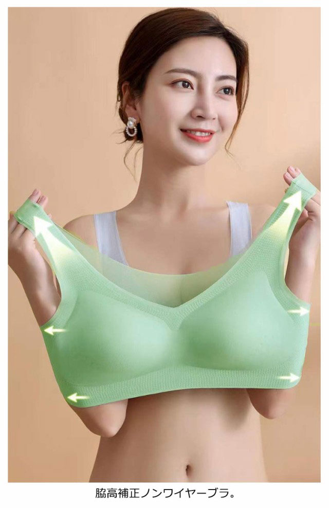 | ノンワイヤーブラは柔らかく着心地の良い高弾性接触冷感素材で、 肌にやさしく、タイトではなく、 通気性と速乾性の機能が涼しく快適触感を生み出します。 脇高補正ノンワイヤーブラ 超薄いブラジャー(0.1 cmまで薄い)、拘束感無いサポート、 脇肉、贅肉をしっかり締めてアップします。 幅広ストラップは滑りにくく、胸元をしっかりサポートします。 24時間着用しても肌や肩に負担がかけずに。 さらに、転写プリント洗濯ラベルの設計で睡眠の快適さが向上します。 | |