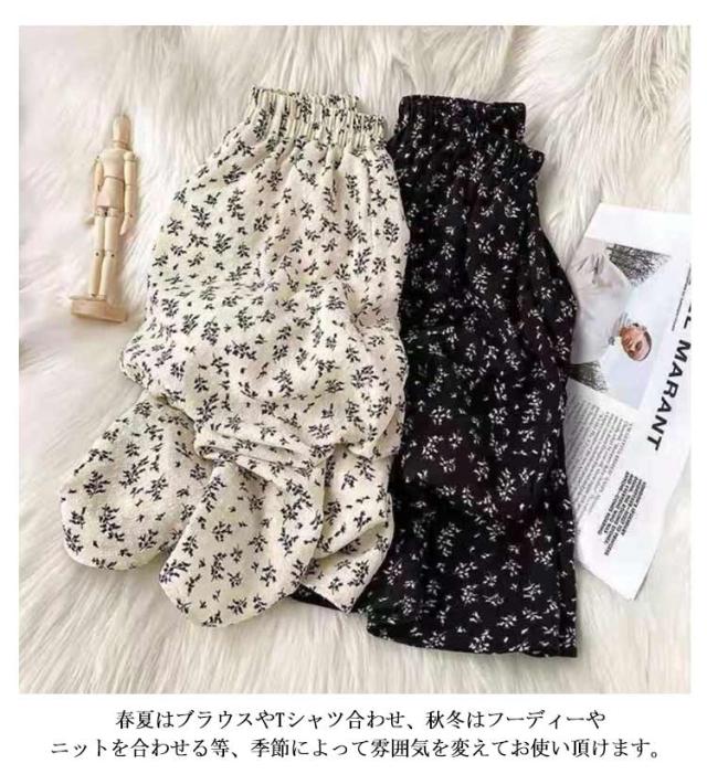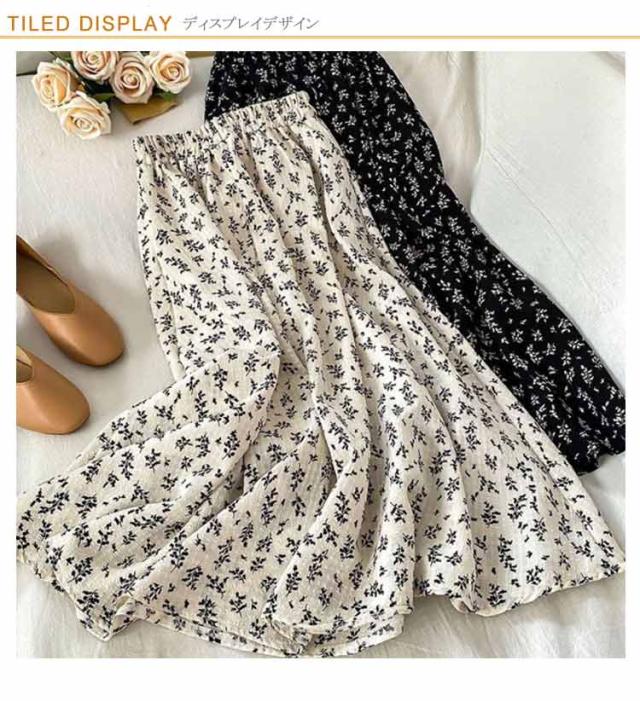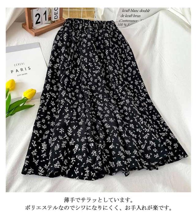 花柄ロングスカート ロングスカート 小花柄スカート 花柄 スカート フレアスカート ウエストゴム フラワープリント レディース ボトムス ロング丈 マキシ丈 膝下 ひざ下 Aライン スカート 20代 30代 春 夏 秋 ゆったり 送料無料