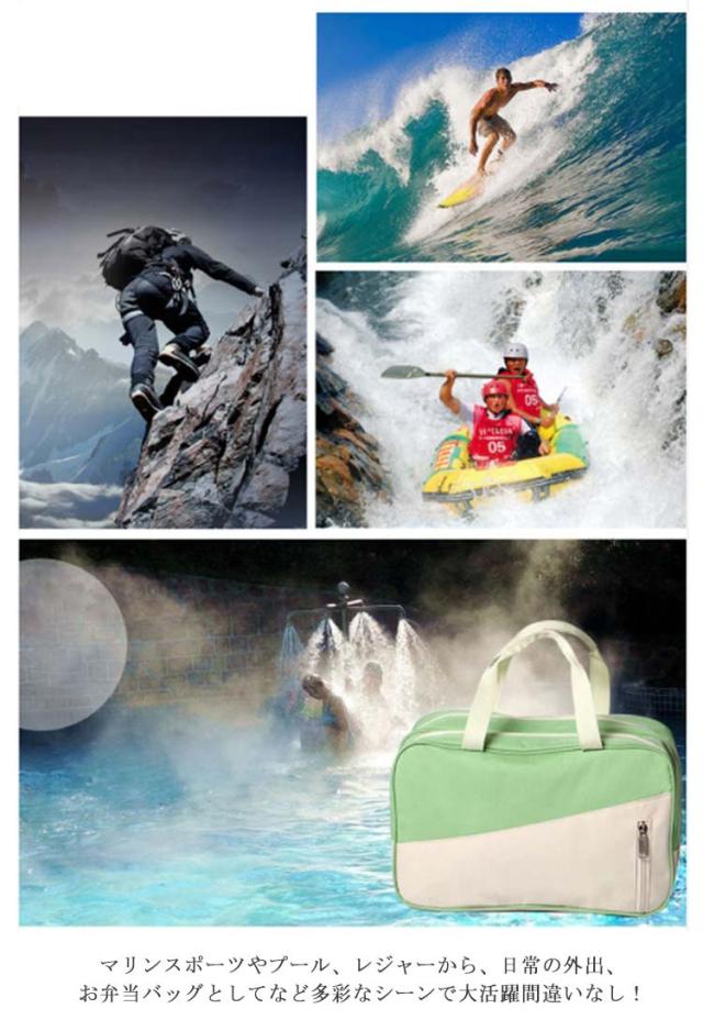 | オシャレな防水プールバッグ マリンスポーツやプール、レジャーから、日常の外出、お弁当バッグとしてなど多彩なシーンで大活躍間違いなし! 防水素材使用で、濡れたものをそのまま入れても大丈夫〜♪ 豊かなポケット付き、小物の収納もスッキリ。 温泉やスパでシャンプー等アメニティーグッズを浴室内にそのまま持っていけちゃう濡れてもOKなバッグです。 ビーチやプールはもちろん、フィットネスやヨガに行くときなど幅広くお使い頂けます♪ 男性にも女性にも使いやすいシンプルでおしゃれなデザイン。 | |