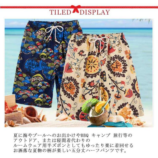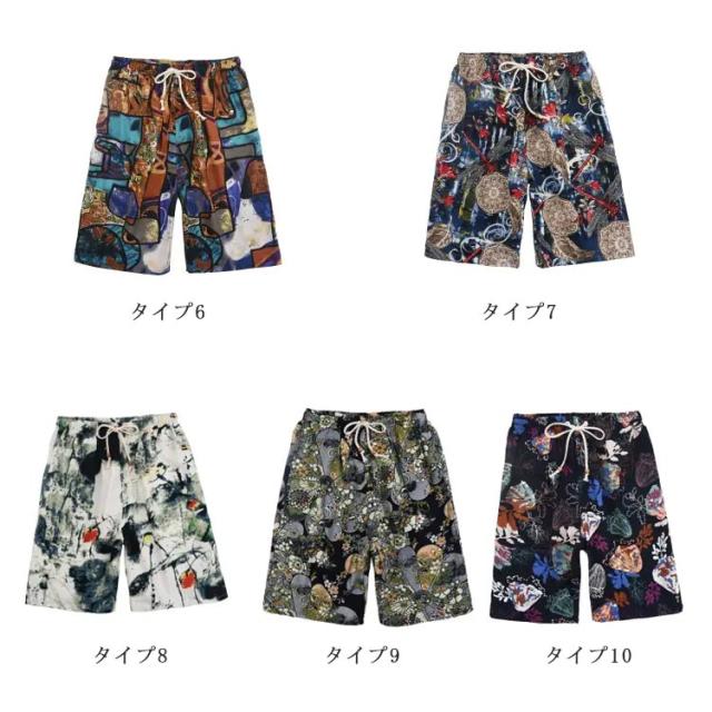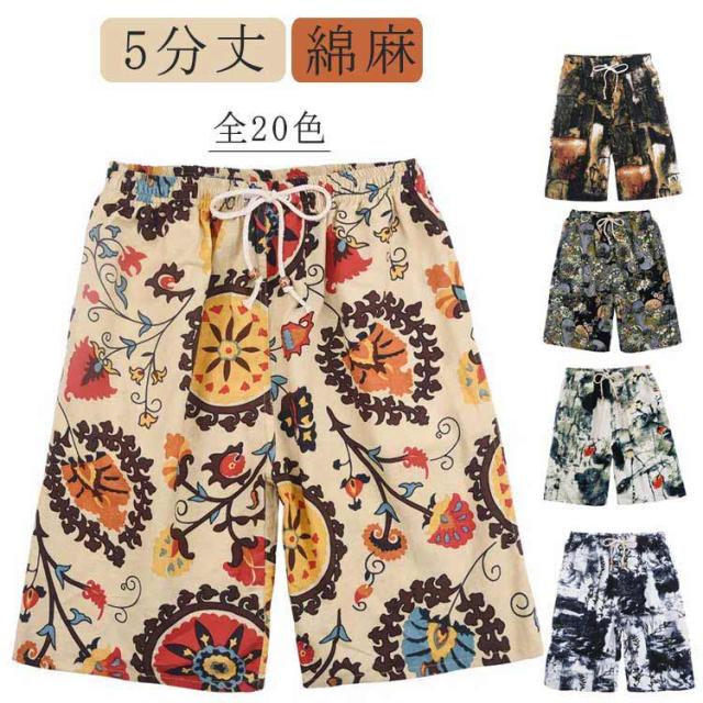 花柄 ショートパンツ ハーフパンツ メンズ リネン パンツ 5分丈 パンツ 綿麻 パンツ 花柄パンツ 綿麻 リネン リネンパンツ リネン ショーツ ショーパン 綿麻ショーツ 海パン サーフパンツ 海水パンツ ルームウェア