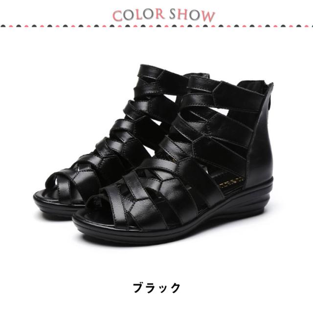 22.5-25cm 軽量 ブーツサンダル オープントゥ ぺたんこ 歩きやすい グルカサンダル ショートブーツ 疲れない コンフォート レディース フラット サマーブーツ レザー調 カジュアル おしゃれ 30代 40代 50代 グルカサンダル 4cmヒール
