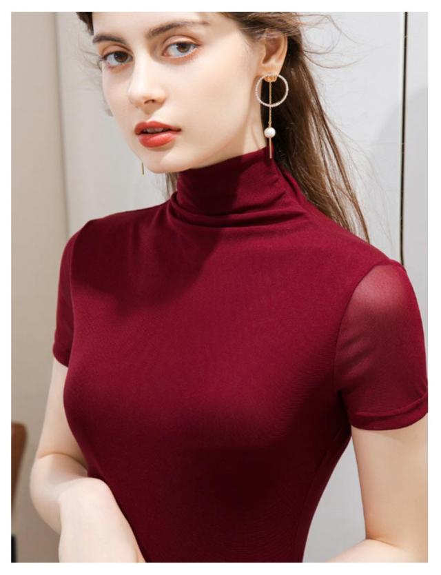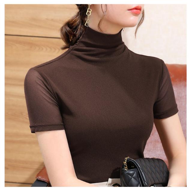 | 袖に透け感のある素材を使用した、半袖のハイネックカットソー。 伸縮性・通気性にも優れていて身体に程よくフィットし、もたつき感なく着用できます。 どんなアイテムとも合わせ やすいで無地のデザインと薄手のサラっとした素材で春夏コーデに大活躍間違いなしのトップス。 薄手なので重ね着しても着ぶくれせず、春夏は紫外線対策や冷房対策、秋冬は首元の防寒対策にピッタリ。 | |
