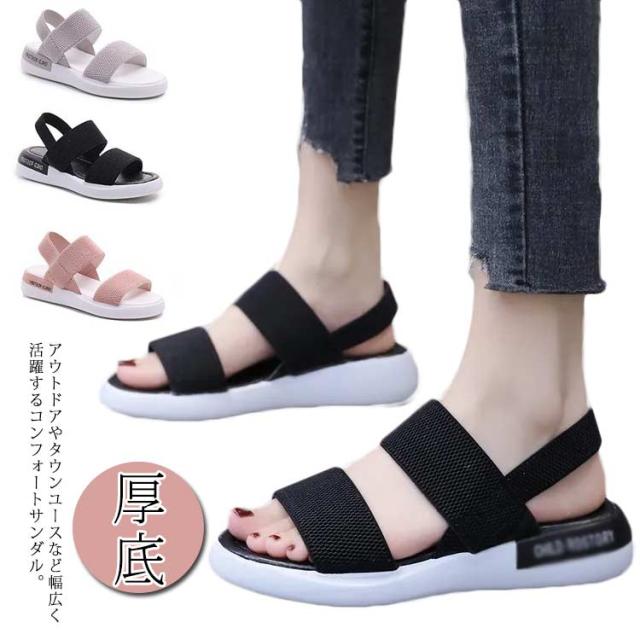 コンフォートサンダル ゴムストラップ サンダル レディース スポーツ 厚底 スポーツサンダル ナースシューズ 立ち仕事 室内履き つっかけ 疲れない 美脚 クッション リラックスサンダル 歩きやすい 痛くない ゴムベルト ブラック グレー ピンク
