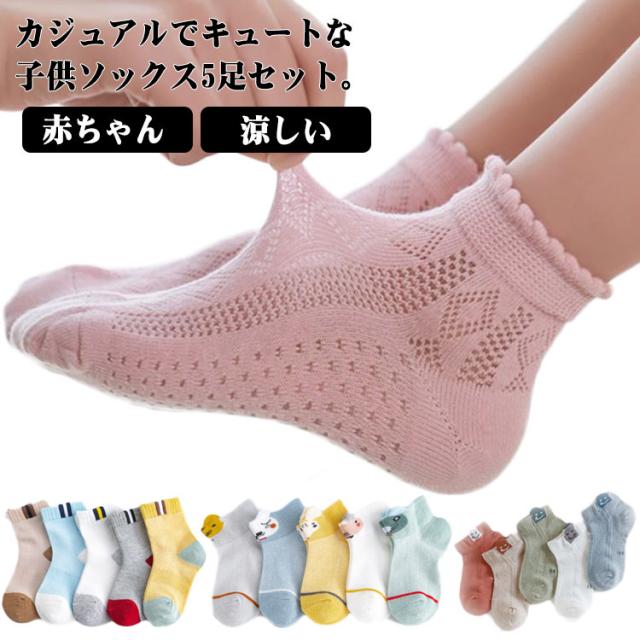 こども 靴下 メッシュ ソックス 子供ソックス キッズ ベビーソックス 5足セット ショートソックス 赤ちゃん 男の子 女の子 夏 涼しい 幼稚園 幼児 夏物 薄手 おしゃれ かわいい くつ下 プレゼント 0-1歳 1-3歳 4-6歳 7-10歳