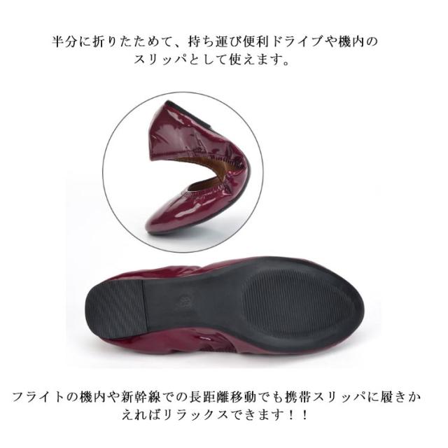| 【パンプスタイプのバレーシューズはヒール無で痛くない】 【半分に折りたためて、持ち運び便利】 おしゃれな携帯 スリッパで室外にも使えます。 ヒールがないので歩きやすい。 転んだら危ない妊婦さんや育児中のママにぴったりです。 半分に折りたためて、持ち運び便利ドライブや機内のスリッパとして使えます。 フライトの機内や新幹線での長距離移動でも携帯スリッパに履きかえればリラックスできます!! | |